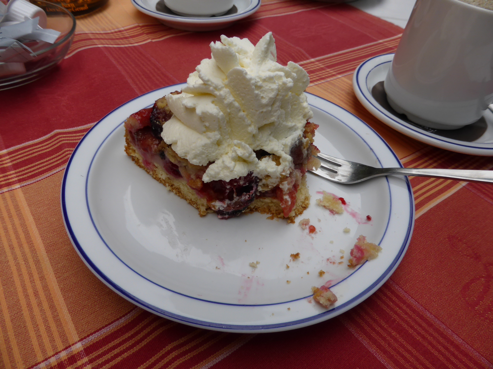 Day 2 was lovely – great and varied roads through traditional German villages with lots of places for mahoosive cake with coffee and mahoosive beers (just the one of course) and a guest house at the end with a lovely welcome and access to a lake to swim in – heaven after a hot day.