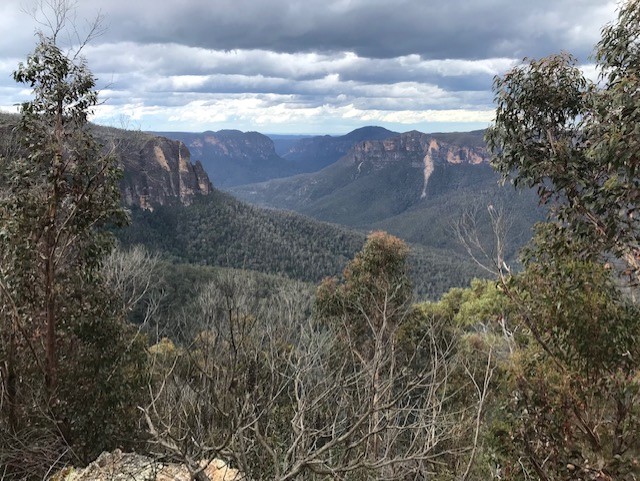 Blackheath is well placed for exploring the Blue Mountains and for more serious hikers like Will & Nicky there are miles and miles of bush trekking to be had. For us though we were happy to do a moderate amble out from the Blue Mountains Heritage Centre along the Fairfax Heritage Trail to Govett’s leap. View were stunning from the lookouts and I was interested to find out more about the Govett’s leap thing. There’s a statue in Blackheath itself of a guy on a horse. Looking into it a bit more, it seems that this life size sculpture indeed depicts Willim Romaine Govett who was an early government surveyor (yawn, why have a statue to that?) However, not as straight forward and respectable as he seems as Govett was also a bushranger and myth has it that he rode his horse off the cliff to certain death rather than be captured by the pursuing police hence Govett’s leap Much more exciting. Sadly, though, there is no further detail of why he was escaping the police, or even what his horse was called, but more about that as a surveyor, he discovered the point in 1831. I’m not having that though – definitely a cover up and I will spend my energies on making up a reason for his escape and leap over the cliff rather than picture the unveiling of the status by the Minister for Lands and 100 more boring types keen on cover up.