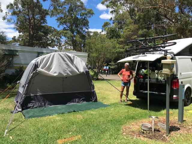In this I’m referring to dear old Bondi Bob. Not only has he served us so well as our home over the last 4 or so months, he has shown his versatility as a transformer. First of all I mentioned that we managed to do the driving away bit from the drive-away awning with no dramas. This was so that we could pop up to Gosford so that Tim could have a reunion with both John and Ray – first time all 3 school friends had been together for 50 plus years- and so that I could actually meet John, his partner Jane, and see Ray’s wife Sally again since our get together in North Freo. It was a great couple of days with much eating, drinking, chatting and laughing and although I know nothing about boats, listening to John’s enthusiasm for his business and understanding just what an accomplished sailor he is was quite something. If only I was better on water…! What a lovely thing it is to have great friends so far away. I can’t help but be quite humbled by it. So, although these faces will have changed since their days at school, their bond and connection certainly has not! What a handsome trio they make too.